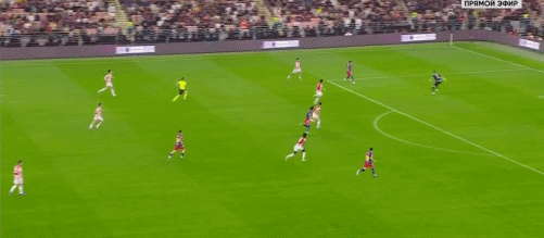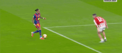 第5分钟,拉菲尼亚过掉乌奈-西蒙后传中,巴尔德吉没有顶到球