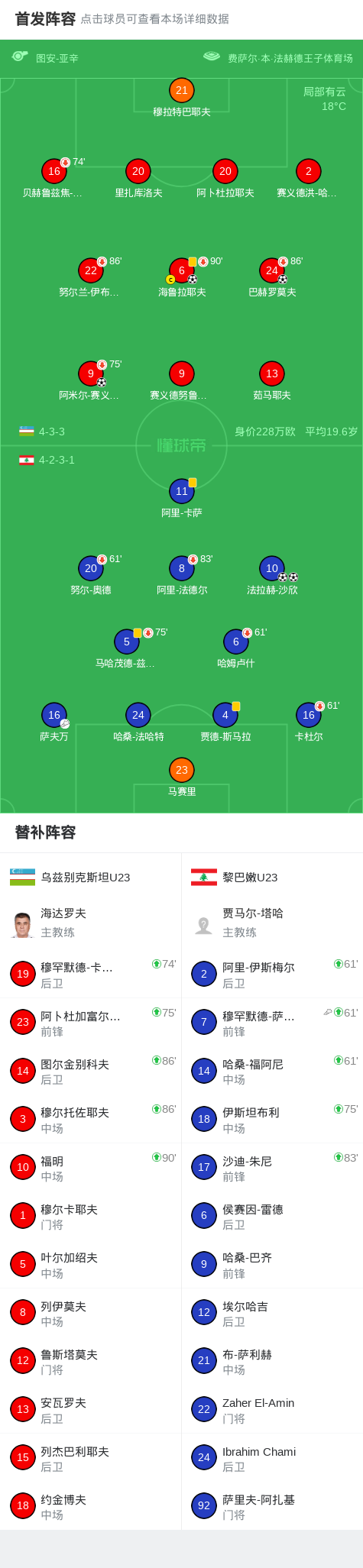 乌兹别克斯坦U23 3-2黎巴嫩U23,巴赫罗莫夫、海鲁拉耶夫破门