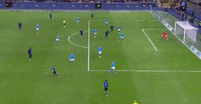 第9分钟,图拉姆助攻,迪马尔科小角度抽射远角破门,国米1-0那不勒斯