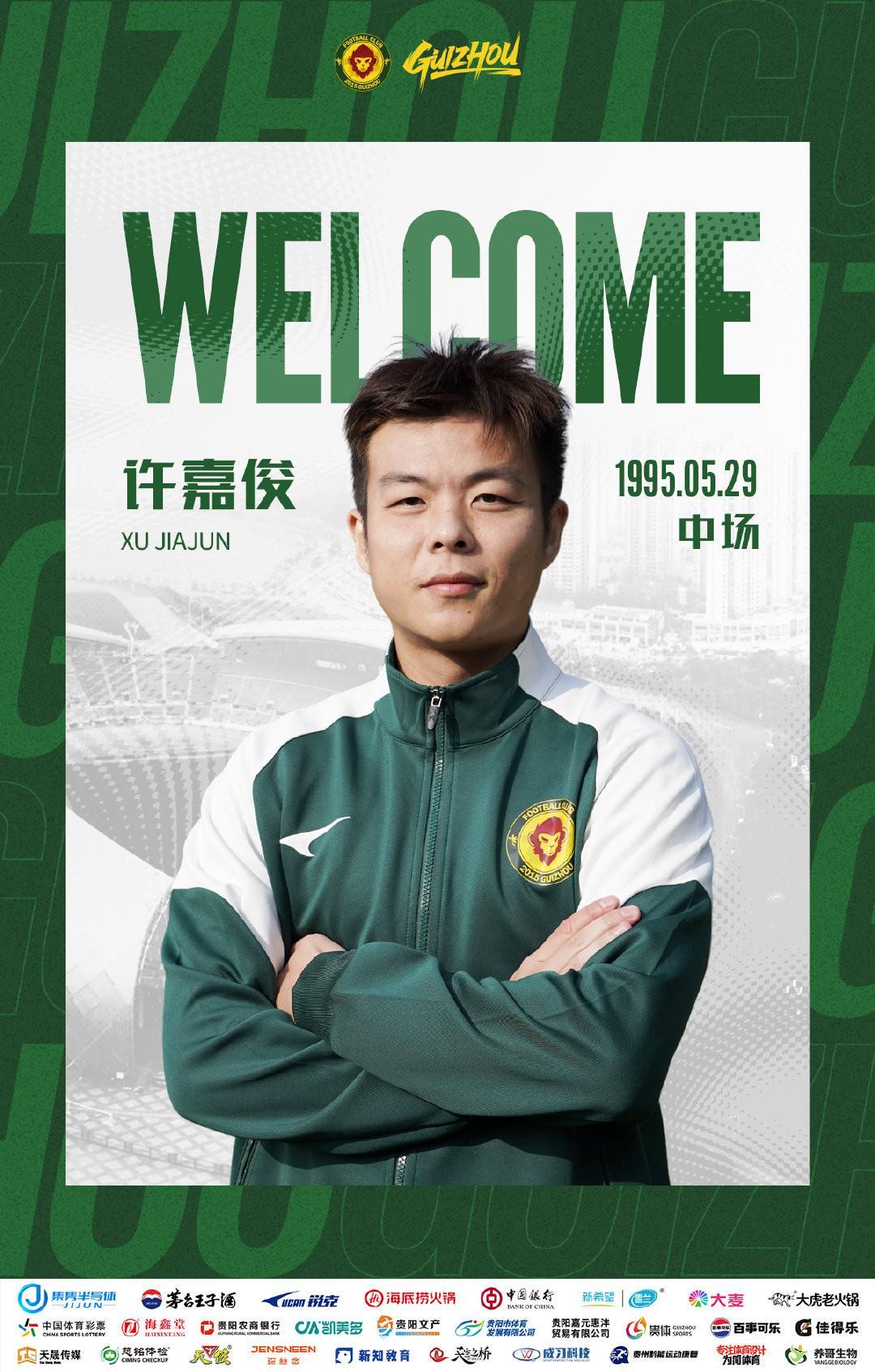 欢迎许嘉俊加入贵州筑城竞技大家庭,让我们一起凝心聚力,为贵州而战!