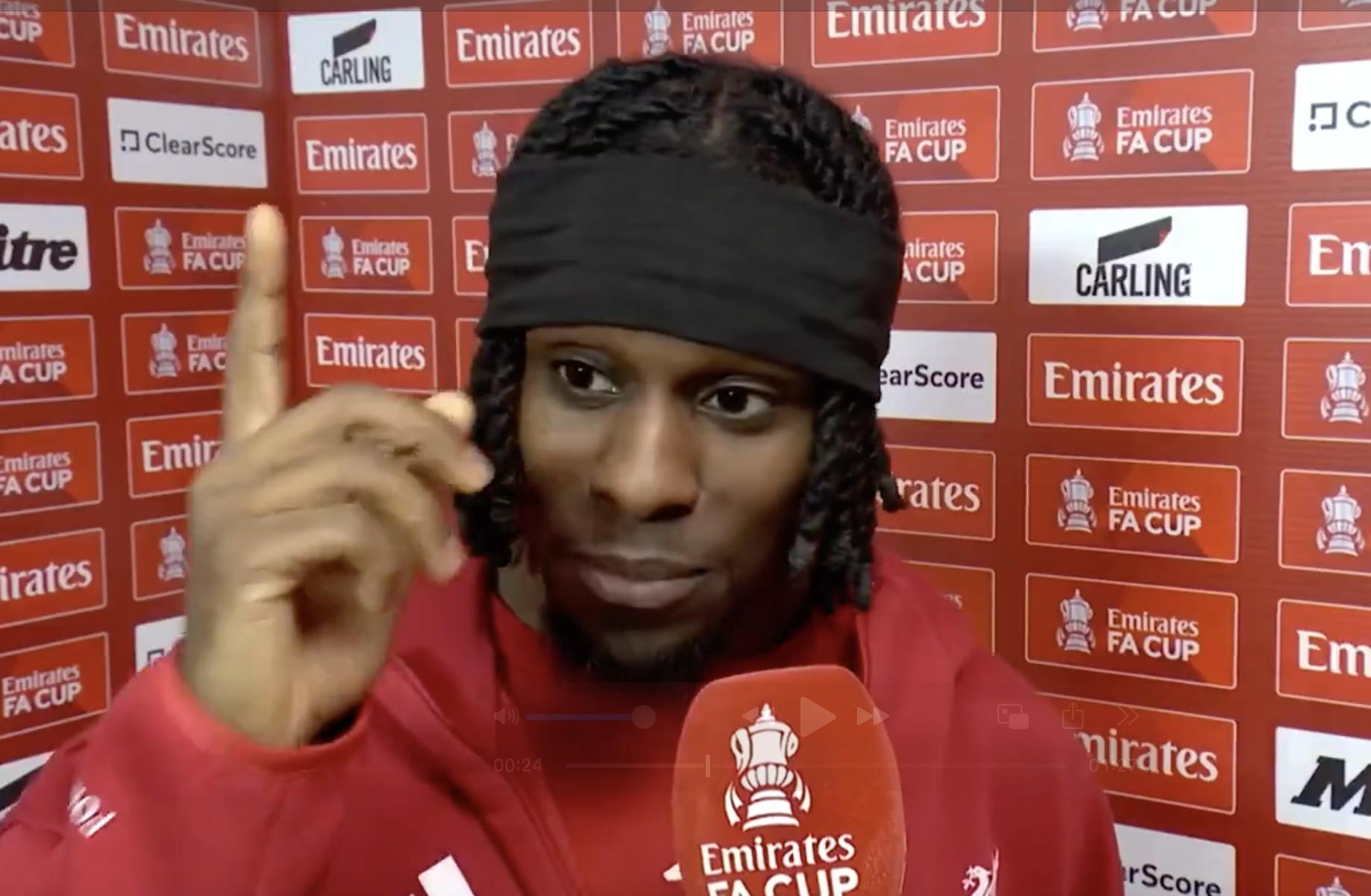 足总杯第三轮,利物浦主场4-1击败巴恩斯利,此役打入一球的红军后卫弗林蓬接受了TNT体育的采访。