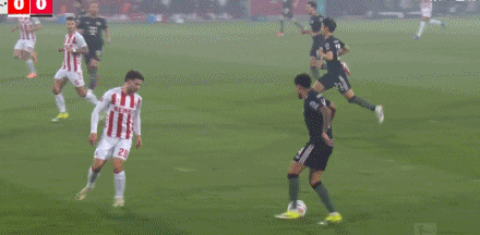 第45+5分钟,将功补过!奥利塞助攻格纳布里小角度破门,科隆1-1拜仁