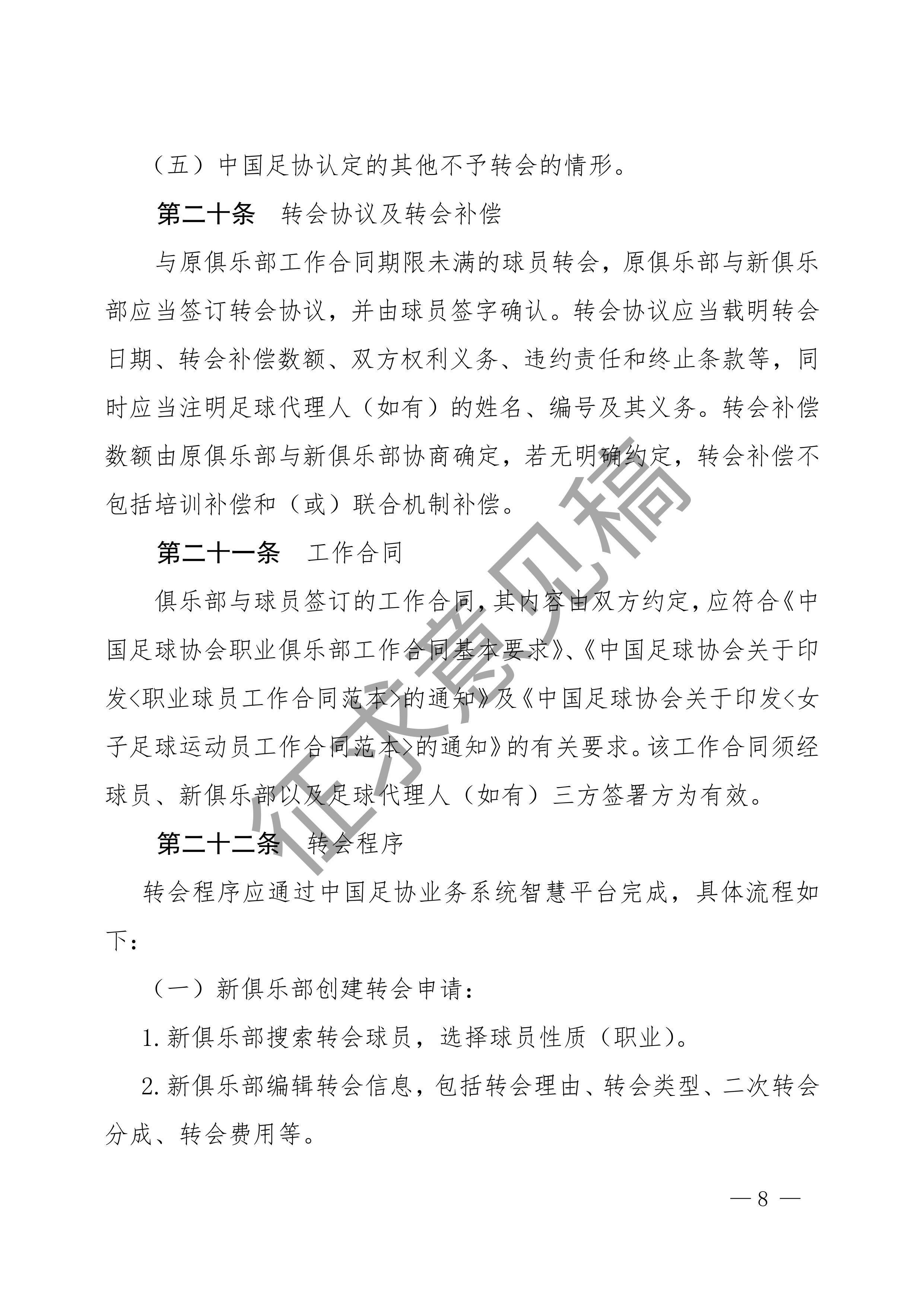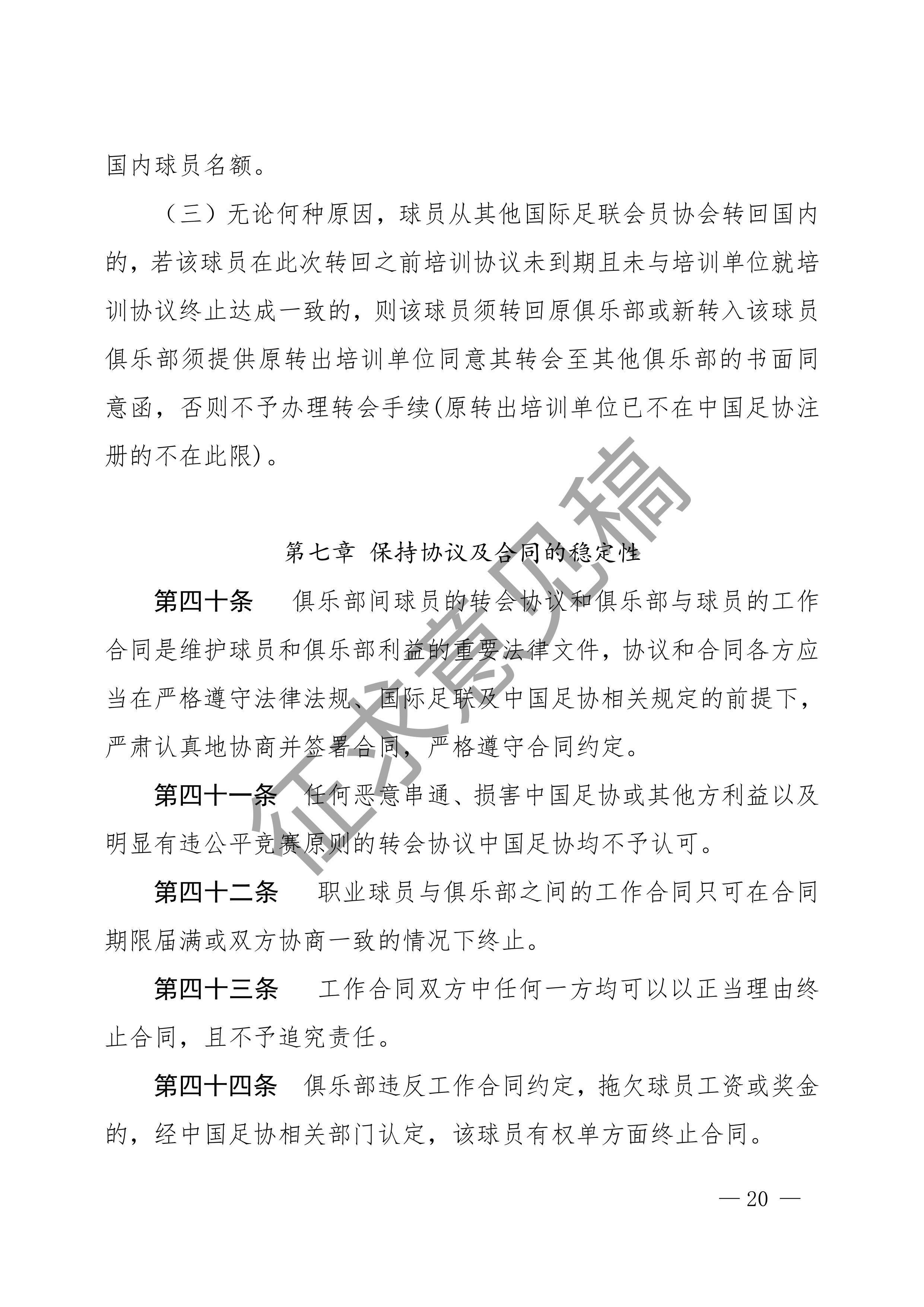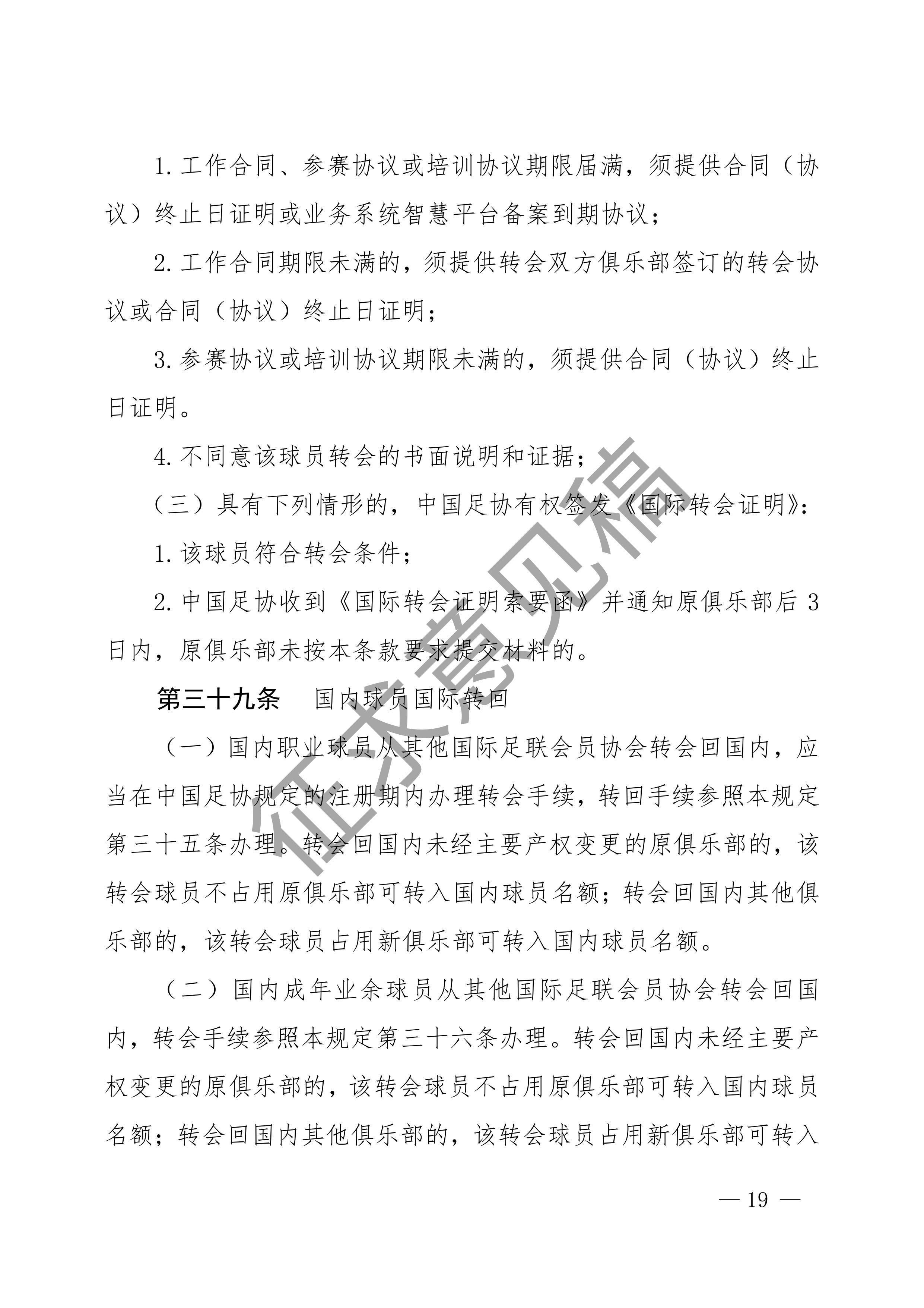 中国足球协会球员身份与转会管理规定征求意见稿